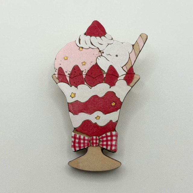 しろくま入りいちごパフェのブローチは、愛らしいしろくまがいちごパフェに寄り添うデザインが特徴の楽しいアクセサリーです。 まるで、アイスを支えるしろくまの姿が目の前にあるかのような可愛らしさがあります。 このブローチを身に着けることで、心がほっこりすることでしょう。 いちごパフェの鮮やかな色合いと、しろくまの愛らしさがあなたの個性を一層引き立ててくれます。 可愛いデザインで、日常に少しの幸せをプラスしてみませんか。
