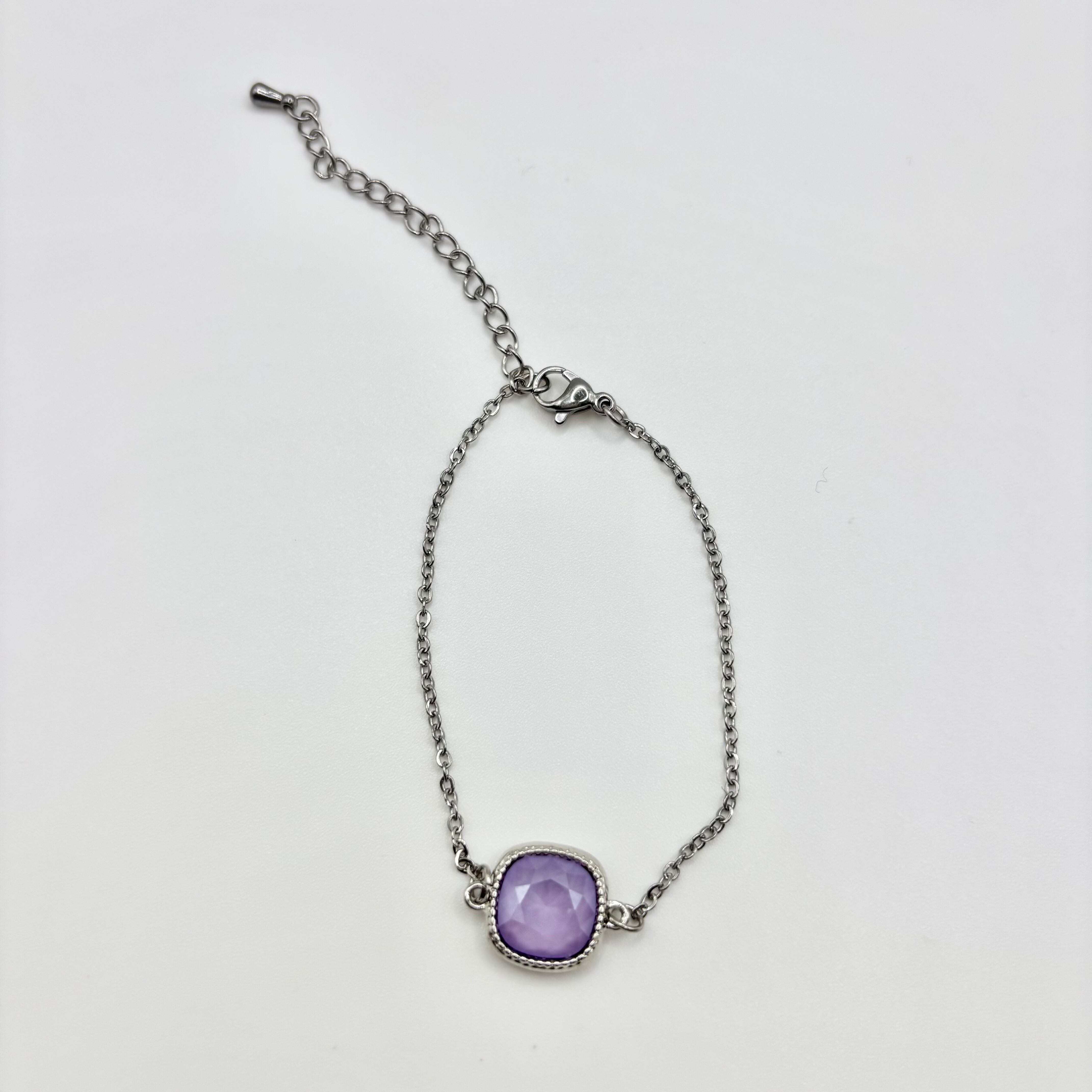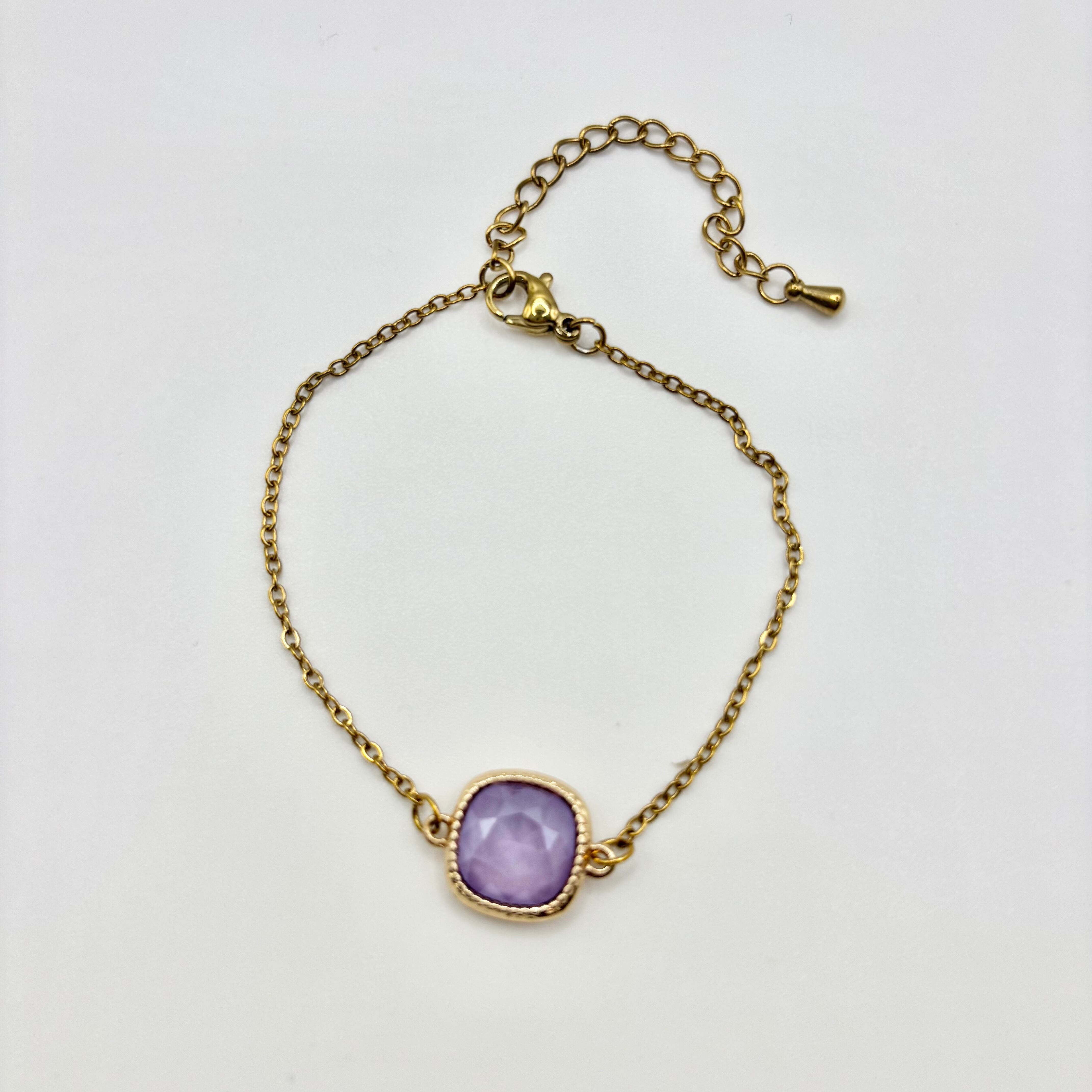 こちらのブレスレットは、心を癒すラベンダーの香りが漂うかのような特別なアイテムです。柔らかな色のクリスタルが手首を華やかに彩ります。