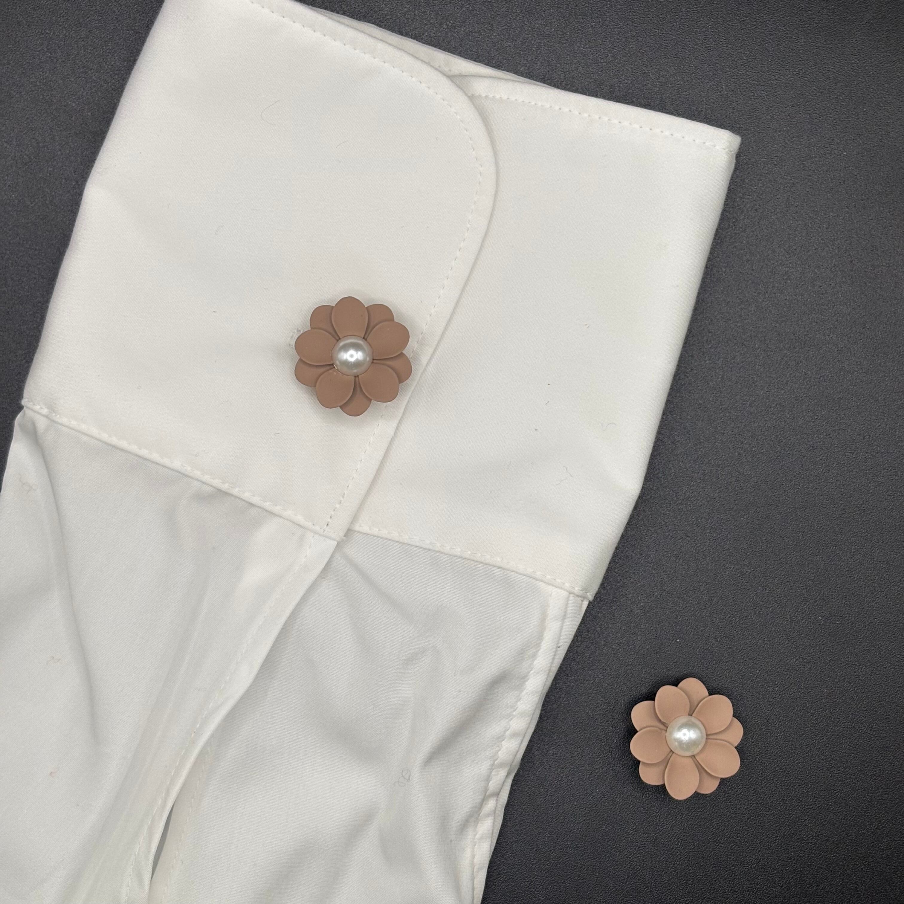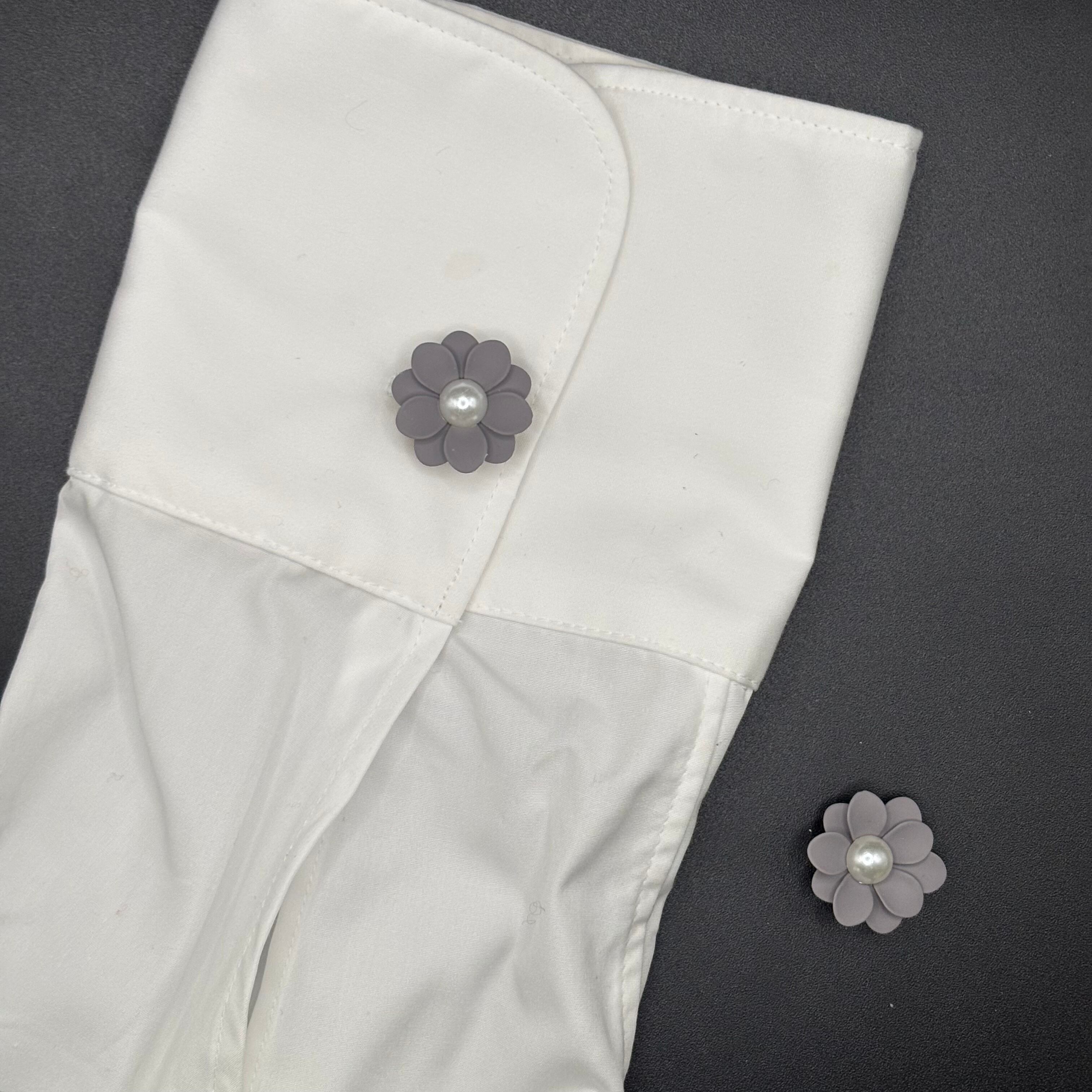 このボタンカバーは、シンプルながらもお花のデザインが特徴的で、普段使いから特別なシーンまで幅広く対応可能です。