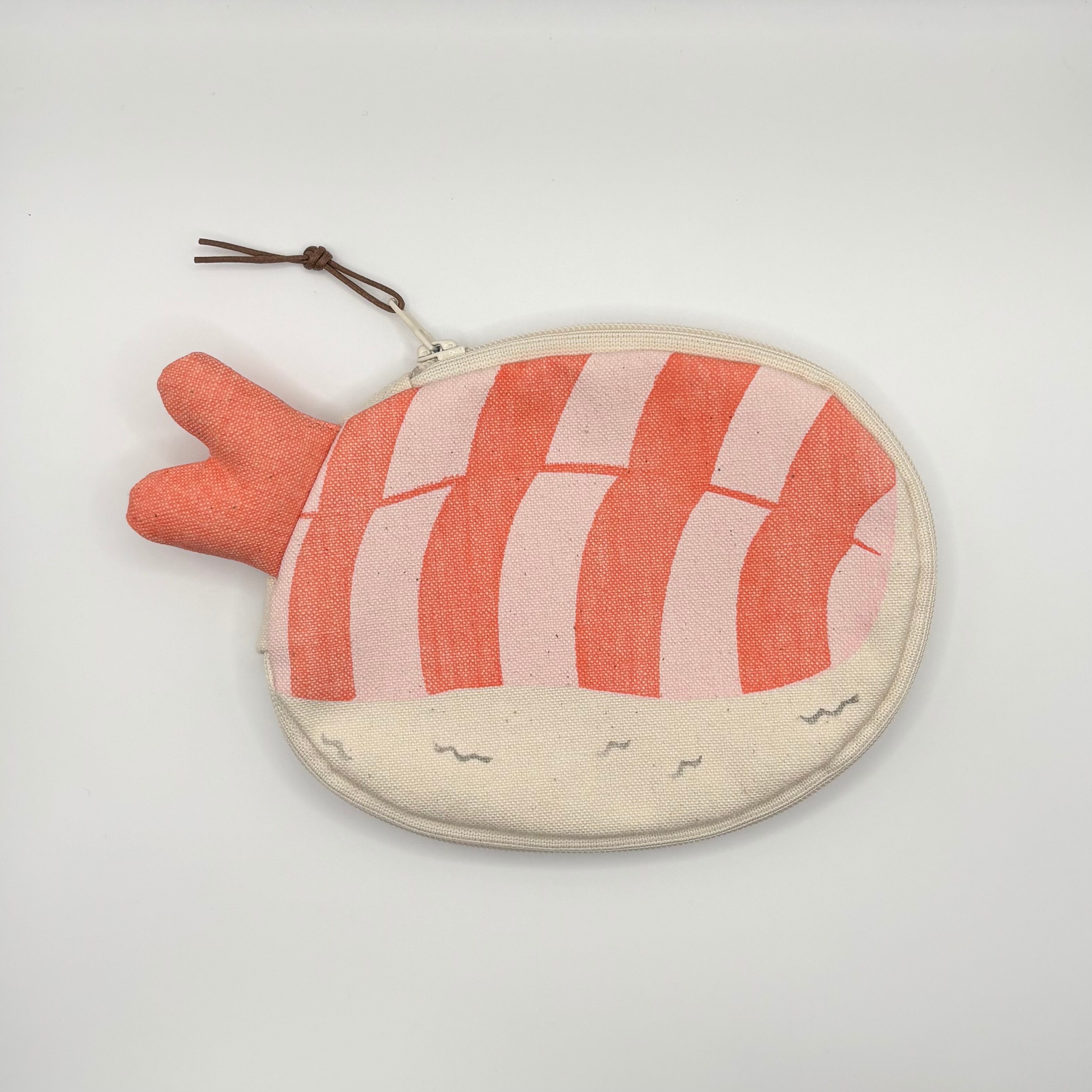 こちらのえびのお寿司ポーチは、鮮やかなデザインが特徴的です!