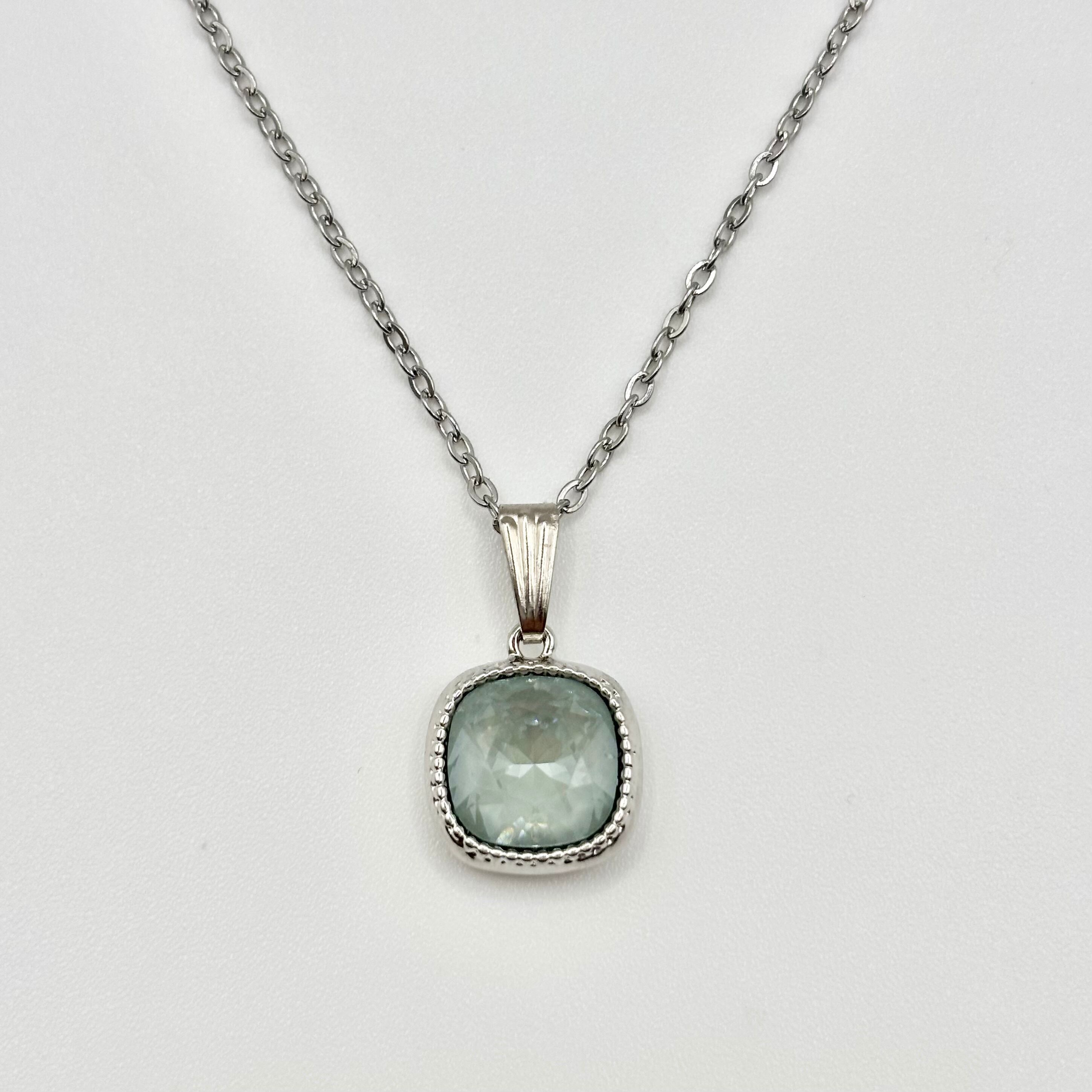 このネックレスは、水面の美しさを感じさせるクリスタルが特徴で、シンプルながらも洗練された印象を持っています。