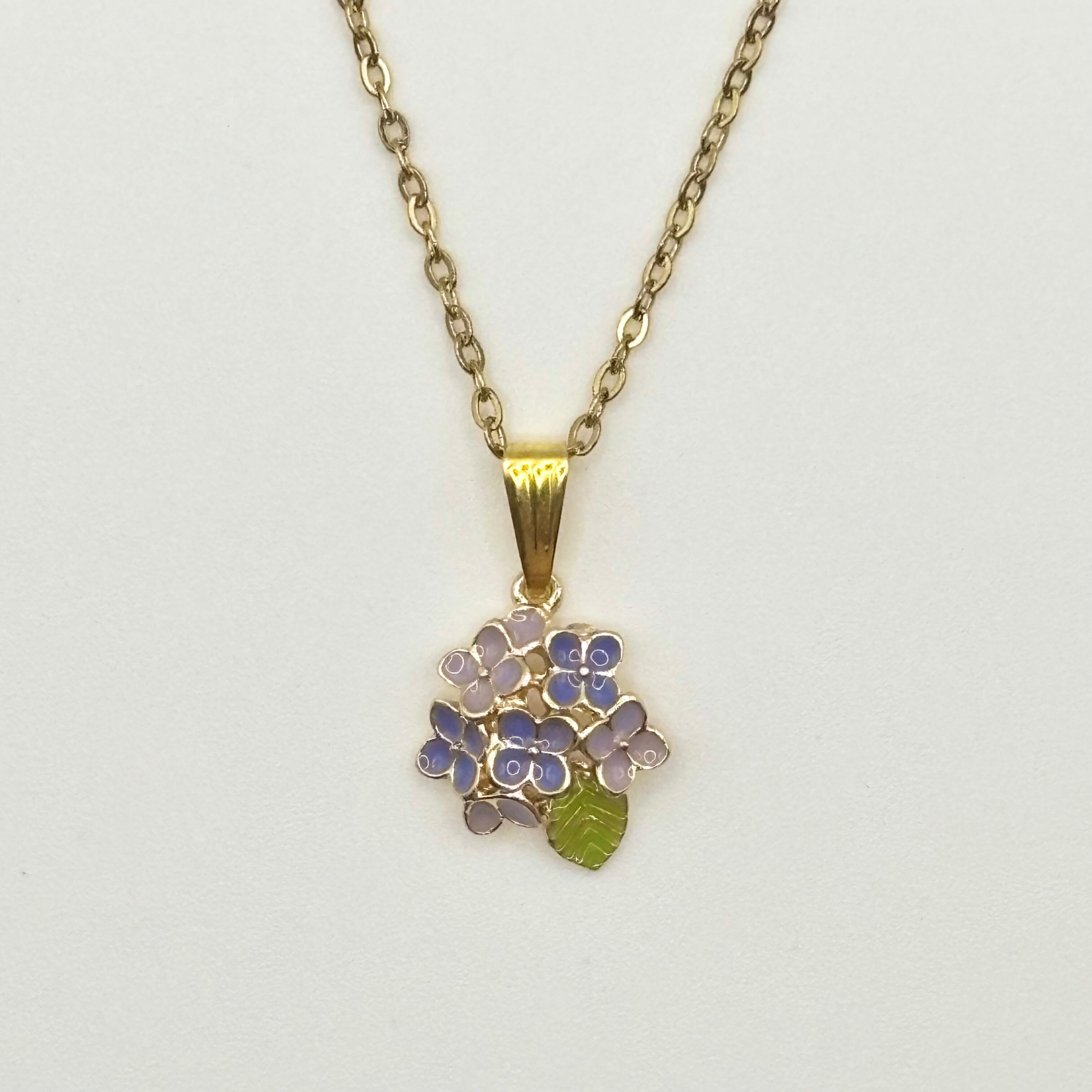 こちらのネックレスは、優雅な紫陽花のデザインが特徴的です。