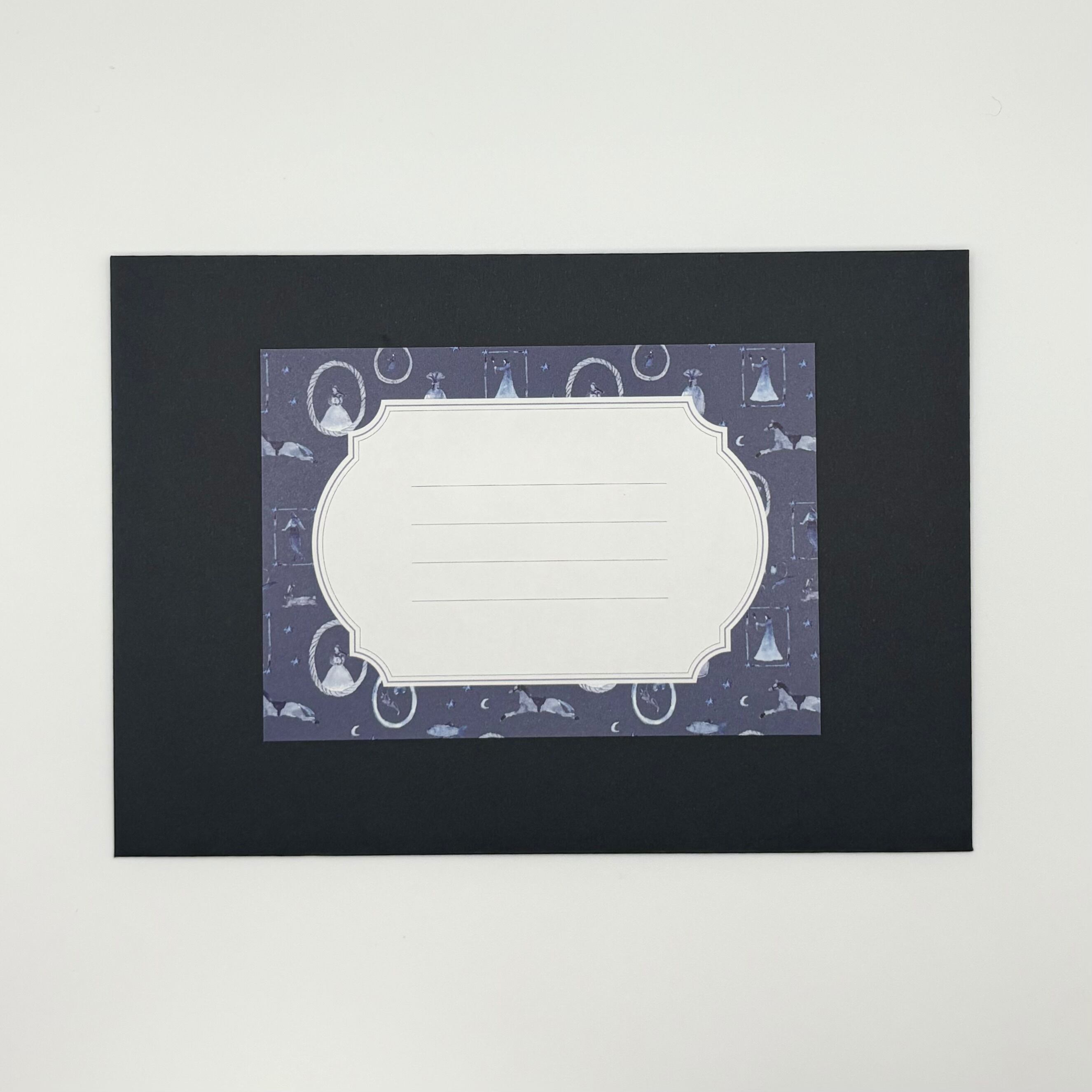 内容:便箋8枚、封筒3枚(うち黒2枚、半透明1枚)、宛名用紙3枚